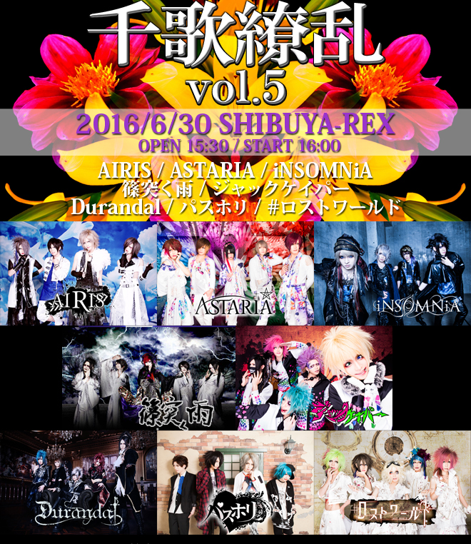 本イベントは今後の活躍が期待されるバンドのみをブッキング。第五回目となる6月30日の公演には、AIRIS、ASTARIA、iNSOMNiA、篠突く雨、ジャックケイパー、Durandal、パスホリ、#ロストワールドの8バンドが出演。