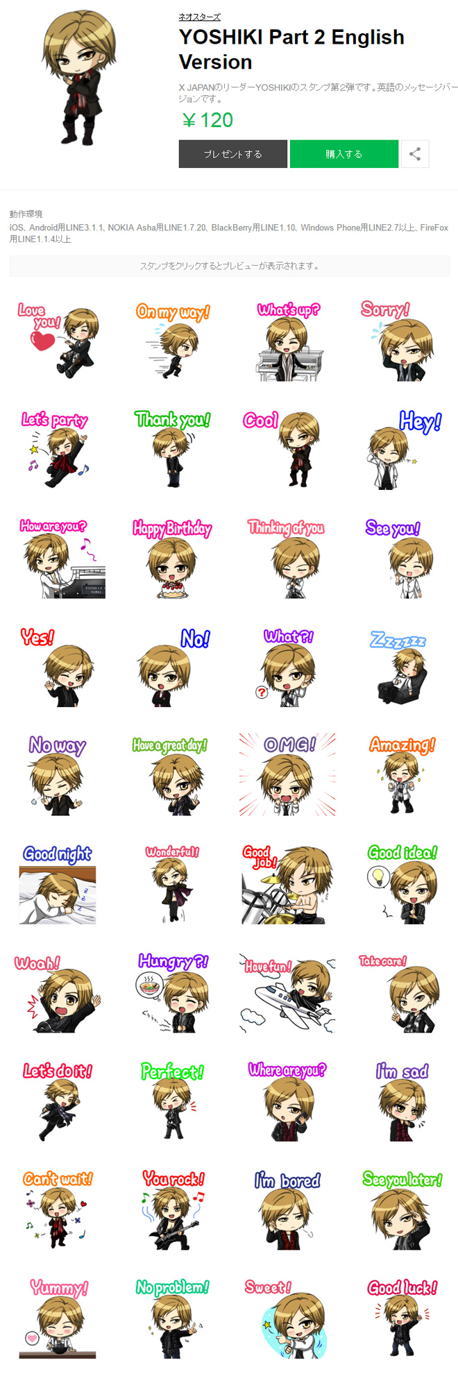 YOSHIKIのLINEスタンプ第2弾 英語バージョン「YOSHIKI Part 2 English Version」が完成、配信開始となった。