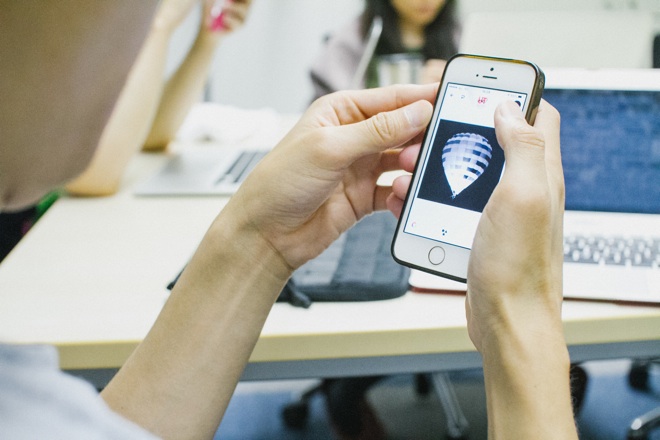 プロデューサー(い):トートバッグも、パーカーも、ポロシャツもあるんですよ。Tシャツはボディの色も白、黒、ネイビーに増えています。黒とネイビーの場合は、一度白で刷った上に色が乗せられるから、発色がとても綺麗で素晴らしいの。PCからでも作れるんですけど、今回はスマホで作る面白さを体験してみましょう。