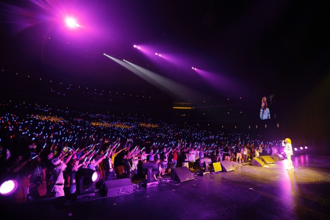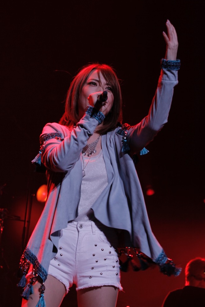 続いて登場した春奈るなは、「Overfly」(TVアニメ『ソードアート・オンライン』フェアリィ・ダンス編EDテーマ)、最新シングル「Ripple Effect」(TVアニメ『ハイスクール・フリート』EDテーマ)、「アイヲウタエ」(TVアニメ「<物語>シリーズセカンドシーズン」EDテーマ)を立て続けに披露、キュートなルックスとたどたどしい英語交じりのMCで観客を魅了した。