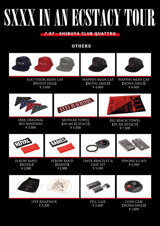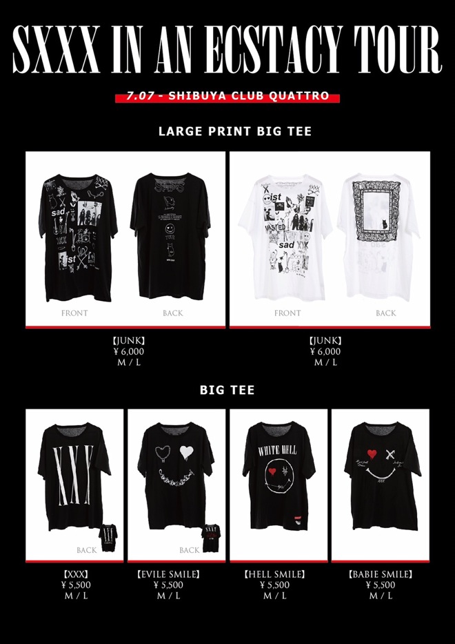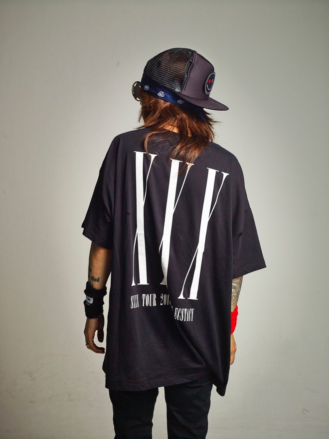 清春:そうね、外タレのオフィシャルグッズを見てると、安い有り物のTシャツにプリントしている場合がほとんどで、でもそれは外タレだからカッコ良く見えてるんだと、勘違いしないようにまずしてます。国内アーティストである我々が同じような事をやっても、まず海外でのみ可能なプリントの種類というのがあったりもする。僕らのだとプリントの種類、濃淡、大きさ・位置・ファンの年齢層とか含めて全てがマッチした上でデザインが良くないと決してヒットアイテムにならないというのが前提としてあります。ウチもデビューして数年の頃までは市場に流れている有り物のTシャツにプリントだけしてその中でもがいてました。