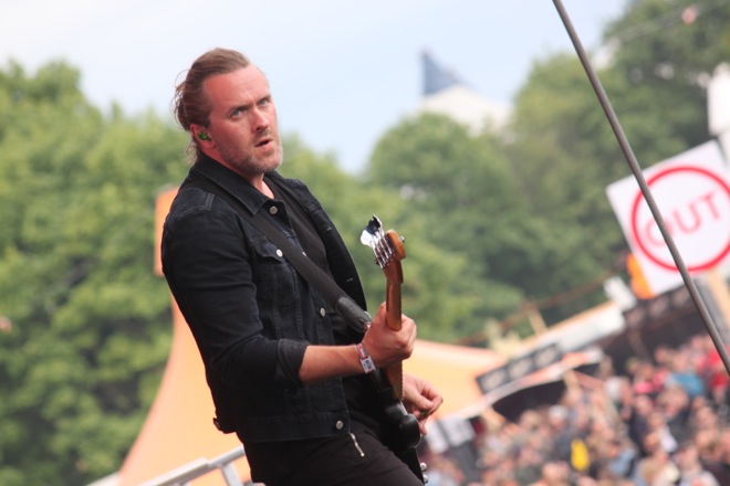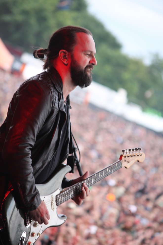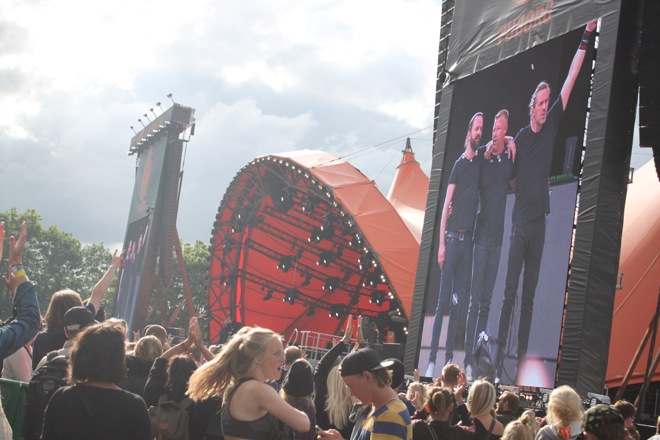 ステージ前に陣取っているティーンエイジャーとおぼしき若者たちは、当然ながらこのバンドがデビューした当時には生まれていなかったはず。つまりそうしたキッズにとって、ディジー・ミズ・リジーは親たちの世代から伝え聞かされてきた伝説のバンドであり、彼らの復活は夢にも等しい出来事。『フォワード・イン・リヴァース』こそが彼らにとって最初の原体験アルバムだったりするわけである。そんな世代が、デビュー作に収録の「グローリー」や「シルヴァーフレイム」から最新曲に至るまでで声を合わせ続けているのだから、ステージ上の3人も満足でないはずがない。日本公演でもバンドとオーディエンスとの音楽的な相思相愛ぶりが感じられたものだが、やはり当然のごとく、母国デンマークの巨大フェスの場でも、それと同種のものをより大きなスケールで体感することができた。実際、現地のプレスによるこの日のライヴの評価も高く、現地最有力紙である『BT』の評では、最高点の★★★★★★を獲得している。僕自身、フェス全体を観たわけではないから迂闊なことは言えないが、彼らこそが事実上のヘッドライナーだったといえるのではないかという気さえする。