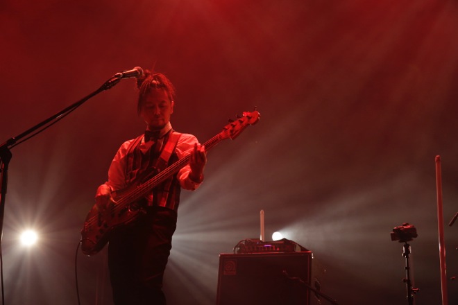 場内が盛り上がってきたところで「BAD COMPANY」へ。このポジションに置かれたことで、「BAD COMPANY」はツアーでキラーチューンとして威力を発揮するナンバーへと大成長を遂げた。そして、そこに駄目押しで高橋の黄金の8ビートが炸裂する「PASTA」を投入し、オーディエンスを縦ノリでアゲ倒していったシーンは圧巻の一言。革ジャンを着たパンキッシュな高橋ファンが拳を勢いよく振り上げるなか、とことんエフェクトした椎名のボーカルを乗せて加速していくビートに全員が身を委ね、場内は狂喜乱舞。興奮した椎名が「東京、食べたりなーい。もう少しくれ! HEY! まことっ!」とおかわりをおねだりしてメンバーを煽ると、ビートはさらに大暴走。ライブならではのバンドの激しいテンション感に魅せられ、観客はどこまでも高揚していった。