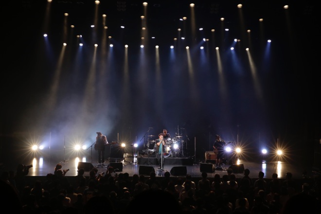 「ROOM 504」からはエロティックな大人ソウルゾーンへ突入だ。友森昭一(G)のファンキーなカッティングと高橋のシャープなビート、tatsuのねばりつくようなベースがイヤラしくいびつに絡み合うなか、椎名が腰を揺らし、指を体に這わせ艶かしいパフォーマンスと歌でオーディエンスを挑発する「ROOM 504」は、粘着度がライブのたびに増幅。その粘着度をさらに3連のスローに落とし込んでの「STRAYED」では、椎名が男泣きのロストラブソングをエモーショナルに歌い上げて見せ、客席からは大きな拍手がわき起こった。続けて披露された新曲「IT’S CALLED LOVE」は、たとえ忘れてしまったとしても未来で君のことを見つけ出す、君が笑ってくれたら他に何もいらないと究極の愛を歌うミディアムナンバーだ。この曲はこれまでの彼らにはない大きなメロディーが印象的な楽曲で、この曲が始まるとたちまち場内が明るい開放感に包まれていった。