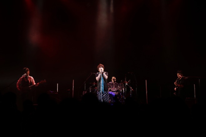 ここでは、高橋がドラム台を飛び出し、舞台の床を叩いてフロントまで出てくる(椎名に「床の点検までしてるよ」とイジられる場面も)という広い会場ならではのパフォーマンスで観客を喜ばせ、そのあとは、椎名が「下手、上手、ティモテ」と笑いでオーディエンスのハートがガッチリつかみつつ、客席を二手に分けて、観客の歌声を見事にハモらせるなど、中盤はライブならではのお楽しみコーナーを連発。