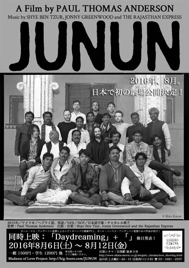 これは『マグノリア』などを手掛けレディヘッドのPVも撮ったポール・トーマス・アンダーソン監督による作品で、日本で唯一、今回だけの限定上映となるものだ。Jununとは、ジョニーがイスラエルのコンポーザー、シャイ・ベン・ツールとインドのミュージシャンたちと組んだプロジェクトで、そのライヴの様子は「CROSSBEAT Presents レディオヘッド&サマーソニック2016」でも紹介されている。更に今回は、同じくポール・トーマス・アンダーソン監督によるレディオヘッドの最新PV「Daydreaming」と、ジョニー・グリーンウッドが音楽を担当した同監督の最新作『Inherent Vice』も同時上映される予定だ。