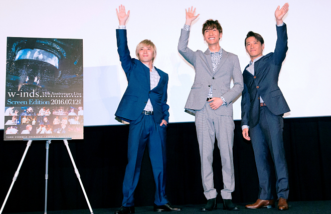 w-inds.が7月12日(火)に東名阪の映画館にて、自身の15周年ライブ映像より劇場公開用の特別編集バージョン『w-inds. 15th Anniversary Live <Screen Edition>』の先行上映会を開催した。