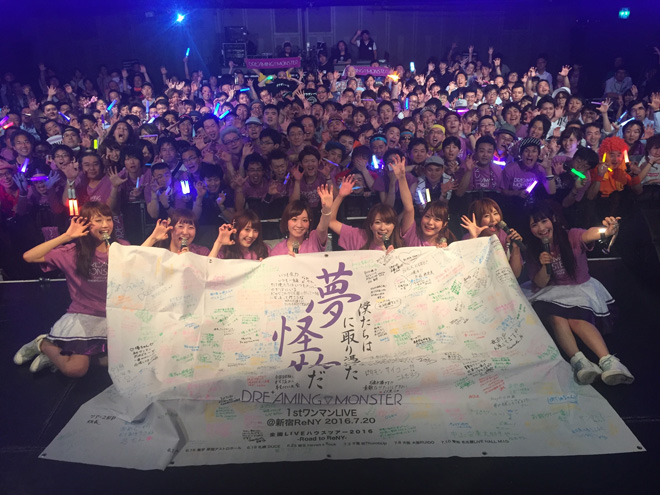 7月20日、大人系アイドルDREAMING MONSTERの1stワンマンライブが新宿ReNYにて開催された。結成&お披露目から約1年、1周年を記念して行われたこのライブでは、満員御礼となる約400人の来場者が会場を埋め尽くしていた。