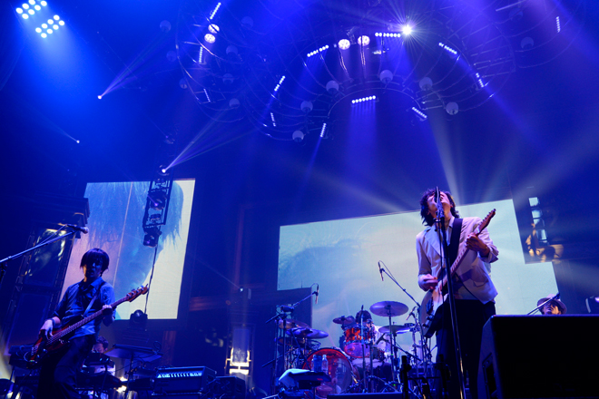 紗幕越しにミラーボールの光とメンバーのシルエットが浮かびあがり、ロックナンバー「Liar」のイントロのギターが鳴ると会場から大きな歓声が上がる。これを合図に半年に及ぶツアー最終日の幕が上がった。「青い春」までアップテンポなナンバー3曲をたたみかけると、地元でツアー最終日を迎えるにあたり「今日はすごく近くに感じてるのでみんなにも距離を感じてほしくないと思って」と清水依与吏がコメント。続く「SISTER」でオーディエンスの熱を上げると、「わたがし」では照明がガラッと雰囲気を変え、会場は夏の夜のような空気に満たされた。