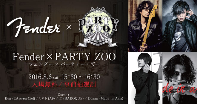 8月5日~7日の3日間に渡って開催されるクロサワ楽器店主催「拡大版!お茶の水楽器祭り」内のイベントとして、Fender×PARTY ZOO、ストラト愛を語り尽くすトークイベント「Fender×PARTY ZOOトークセッション」が開催される。