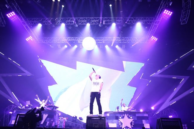 ライブは拳を天高く突き上げて登場したファンキー加藤の「行くぞ!横浜アリーナ!!」の声でスタート。その勢いで「中途半端なスター」、「MUSIC MAGIC」、「まわせ!」など熱い楽曲が披露された。