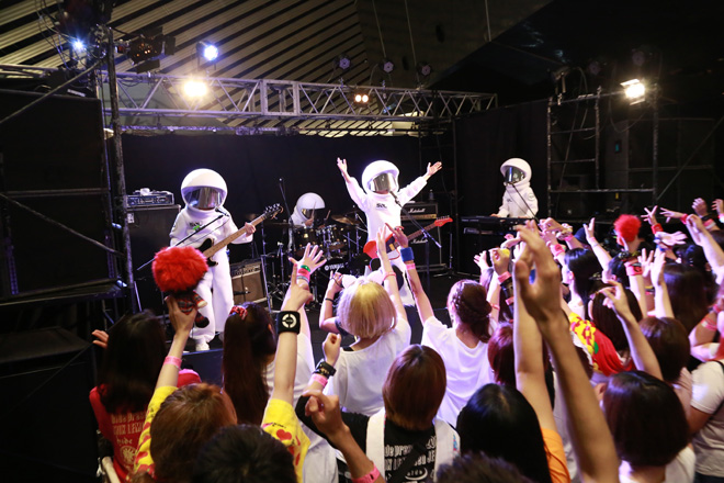 「hideさんに憧れてバンドを始めたのがFLOWです」と語るFLOWは、hideの「D.O.D.(DRINK OR DIE)」をカヴァーし、ステージを所狭しと駆けまわる。「思い出を作らせてください」と会場中のファンらとウェーブを行うなど、全身でこのイベントに出演できた喜びを表現する。2013年に自身の主催する野外フェスにて“ありえない奇跡”と称しhideとの共演を果たした氣志團は、同イベントでも着用したhideのギター「イエローハート」をあしらった特製の学ランを着用。「尺とりすぎ?曲カットするから」と中学生の頃の自身のX、hideとの出会いや、思い出、愛情を1ファンとして際限なく披露する姿に、同じ想いを持ったファンらからは歓声が上がり続けた。