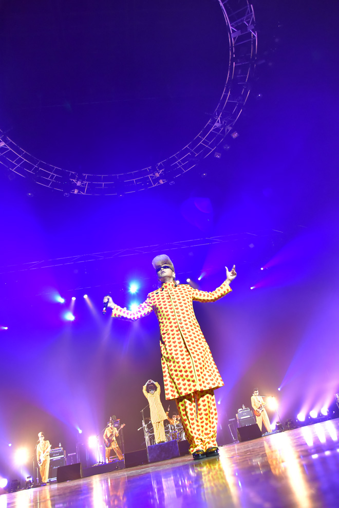 今年もhideらしさは全開だった。様々な仕掛けによっておもちゃ箱をひっくり返したような夏フェスで、まず会場に着いて目に飛び込んでくるのは各種フードの出店である。タコライスや、ケバブなど、まさに夏フェスというものから、「hideだったら絶対面白がっていただろう」というメイドカフェまでも出店している幅の広さがいかにもhideらしい。ロビーにおいては、hideのヘアメイクを担当していたサロン”SQUASH”のヘアカットコーナーや、クレーンゲーム、ガチャガチャコーナーとポップなものから、「hideに会いたい」という難病の少女の夢を実現した、難病と闘う子どもたちの夢をかなえるお手伝いをしているボランティア団体Make-A-Wish Japanの活動を支援するブースなどが所狭しと並んでいる。また、「俺はこういうわがままなことはずっとやるつもりだから。LEMONeDのイベントは今後もお客さんの自主性に任せる部分を絶対に残そうと思ってるから」と、渡された地図とインターネット中継を頼りにオーディエンスが直感のままにイベントを回遊した1997年時に引き続き、今回もステージ別ラインナップとタイムフレームのみが公開され、どのアーティストがどの時間に出演するかは公開されずファン自身が会場内を回遊するスタイルをとっていたり、会場内のいたるところで白塗りの舞踏家集団が舞踏を披露するなど、まさに新旧混合の2016年型<MIX LEMONed JELLY>が実現されていた。