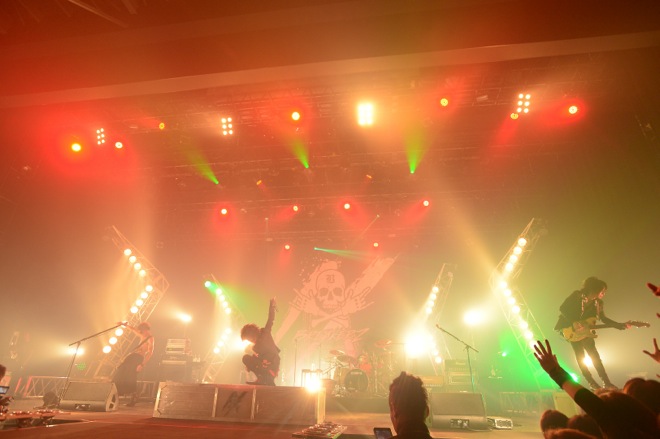 「今日は初めて豊洲PITでやらせてもらったんですけど、みんなと最高の思い出を作ることができてホントに嬉しく思います。一夜限りのライブで僕たちとしても気合い入ってるんですけど、グッズもすごい気合い入ってるので」とBREAKERZ恒例のグッズ紹介のコーナーでも盛り上げる。ひとしきり楽しませた後は「みんなまだ元気残ってるか? ここから思いきり暴れ倒そうぜ!」とDAIGOが煽り、ヘヴィチューン「YAIBA」から始まる終盤戦に突入。BREAKERZ再始動第一弾シングルとなった「WE GO」ではじけ、ライヴに欠かせない「NO SEX NO LIFE」でその熱をさらに上昇。本編ラストはDAIGOのシャウトが迫力満点、AKIHIDEとSHINPEIの青い炎と赤い炎のようなギターが炸裂した「DESTROY CRASHER」で炸裂のエンディングを迎えた。