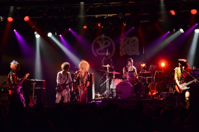 HAL (FEST VAINQUEUR)と澪 (ASTARIA)のツインボーカル、I’LL (FEST VAINQUEUR)とRay (グラムヘイズ)のツインギター、Rei (DaizyStripper)とKAZI (FEST VAINQUEUR)のリズム隊といった3人の“レイ”&FEST VAINQUEURが集結したO組「レイバンクール」は、「ヒステリカ(DaizyStripper)」「Shining ray(Janne Da Arc)」のカバーを披露、セッションとは思えないバンドサウンドを披露した。