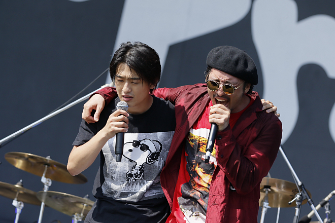 また、10-FEETのステージ終盤には湘南乃風のメンバーであるHUN-KUN、若旦那がサプライズで登場。こちらも会場のロックファン、レゲエファンを沸かせている。さらにサンボマスターのステージでは、本フェスのプロデューサーMINMIが登場し、ロックナンバーを熱唱するコラボレーションで会場を大いに盛り上がげた。