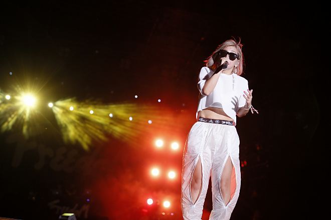 <FREEDOM>で夏フェス初出演を果たしたのはシンガーの尾崎裕哉。ライブでは父、尾崎豊の名曲『シェリー』を熱唱し、父から引き継いだ力強く透き通った歌声に会場は感動に包まれた。また、ライブパフォーマンスの最中、FREEDOM常連の湘南乃風のメンバーであり、今年ソロとしてFREEDOM初出演を果たした若旦那もステージに応援に駆けつけ、コラボレーションも実現した。