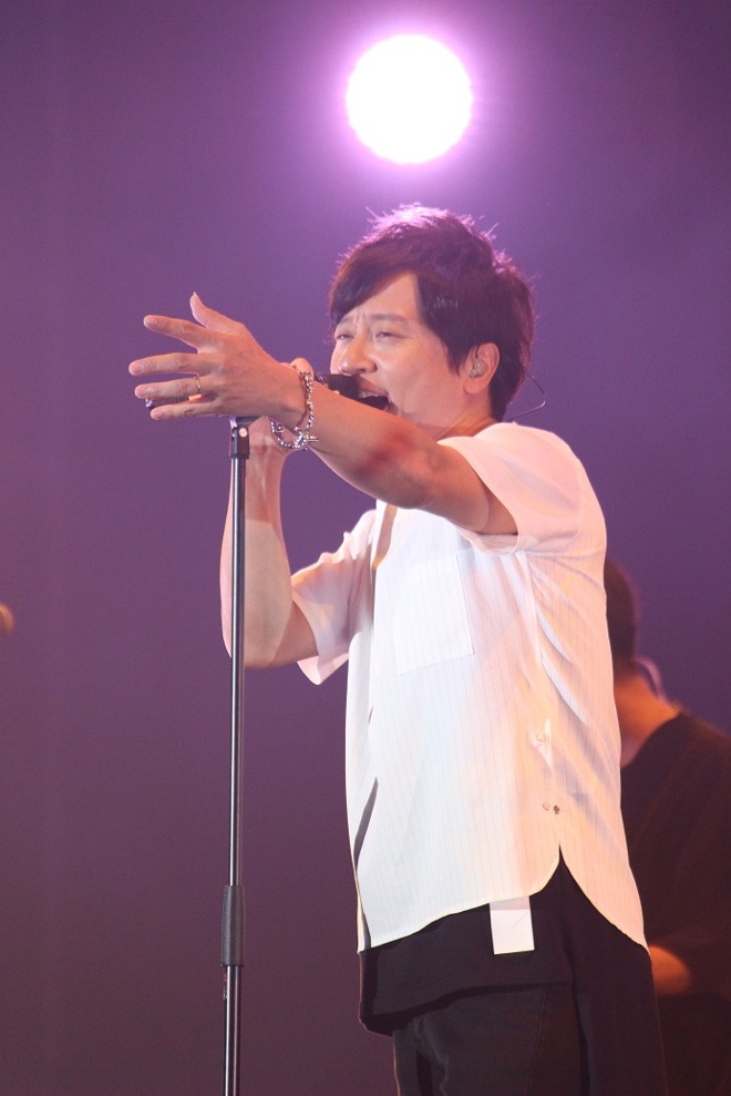 その後も「アポロ」「サウダージ」「アゲハ蝶」といった台湾でも人気の高いヒット曲の連続に会場の熱気がヒートアップしていく。後半の「ハネウマライダー」「Ohhh!!! HANABI」では、15,000人の観客がジャンプしながらタオルを回すなど、<超犀利趴 / SUPER SLIPPA>に壮大な光景を描き出した。一方で、ボーカルの昭仁が前日出演した台湾の人気歌番組からプレゼントされたスリッパに履き替えて、観客を沸かすなど親しみやすい場面も。