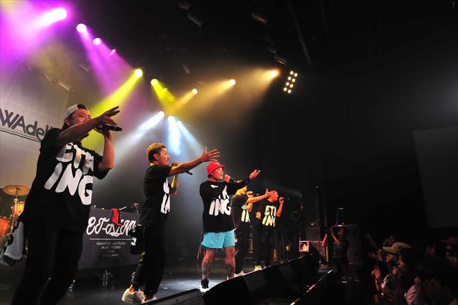 最初のパフォーマンスはSO.ON project。アップテンポの曲に合わせてメンバーが弾けるように踊り、オープニングを飾った。続いて大阪☆春夏秋冬がハードなギターとド迫力のベースを響かせて会場にヘッドバンキングとジャンプを巻き起こす。この2組は8月24日(水)の<NANIWAdelic>にも出演する。