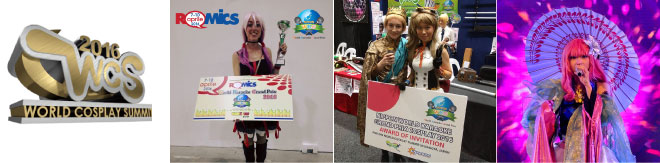 ▲<世界コスプレサミット2016>のロゴと、昨年の<NIPPON World Karaoke Grand Prix Cosplay 2015>の模様。