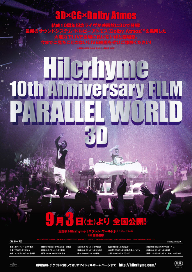 なお、6月30日に実施された特別先行上映会でのファンの声を収録した『Hilcrhyme 10th Anniversary FILM「PARALLEL WORLD」3D新宿が大興奮!編』および映画の予告映像が公開となったので、こちらもあわせてチェックを。