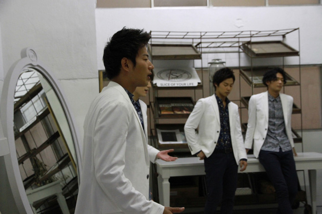 SOLIDEMOのVR作品は、恋愛中や失恋中、仕事で落ち込んでいるなど様々なシチュエーションの女性に向けてメンバーが甘い言葉を投げかけるという、女性の妄想を実現させたもの。壁ドンや膝まづきながらの愛の告白など女性が夢見るシチュエーションが、VR映像ならではの没入感たっぷりのリアルな世界で堪能できる。恋愛ソング「君のままで」やEvery Little Thingの名曲「fragile」なども披露されており、その圧倒的な歌唱力も存分に楽しむことができる。