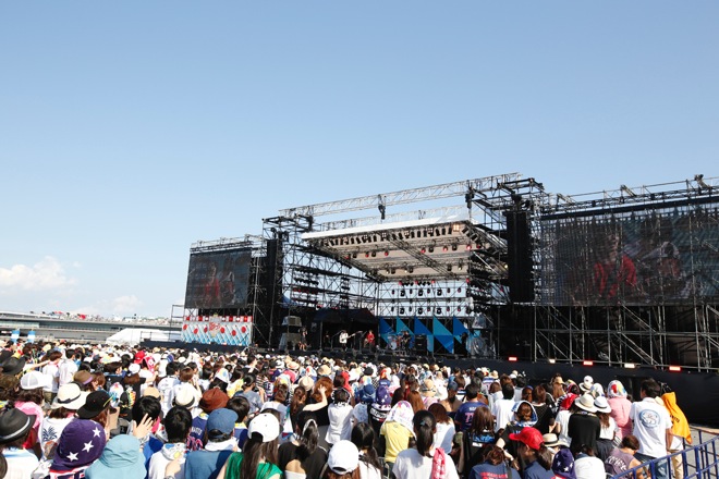 日も沈み始めた頃、いよいよこの日のトリを飾る、EXILE THE SECONDが登場。紹介VTRが流れるだけで、場内からは割れんばかりの歓声が巻き起こる。そんな中一糸乱れぬ繊細さと力強さを兼ね備えたダンス・パフォーマンスで観客を圧倒していった。この日は、4曲目にSHOKICHIとNESMITHのふたりでしっとりと歌い上げるバラードナンバー「Make It Last Forever」が用意されており、勢いだけがではない緩急自在なパフォーマンスを平然とやってのけるところがEXILE THE SECONDの魅力だ。この後ステージは再びアッパーな「Shut up!!Shut up!!Shut up!!」に。秋のアリーナツアーへ向けたシングル三部作第二弾のこの曲にはEXILE AKIRAがサプライズで登場し大喝采を浴びる。最後はMCのDJ MAKIDAIも加わり、SHOKICHIの「拳を高くつきあげろー!」で「SURVIVORS」がスタート。会場は最高潮の熱気に包まれ空前の盛り上がり。ステージ後方から打ち上げ花火のような演出の後、圧巻のステージが終了した。