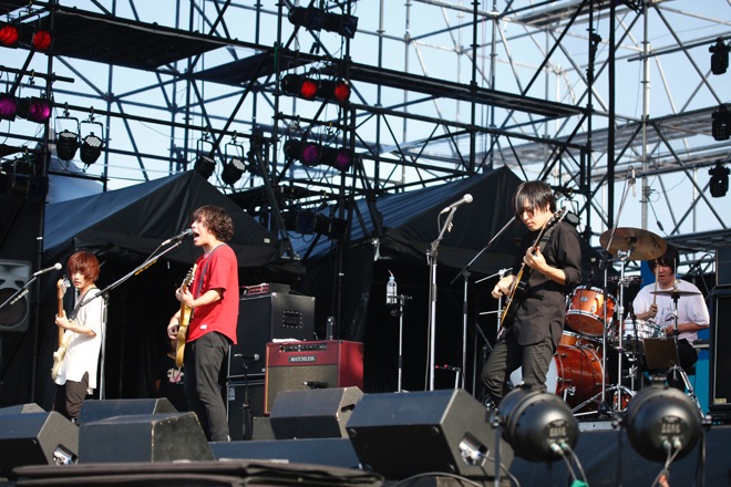 <ZIP!夏まつり>が同所で開かれるのは昨夏に続いて2度めとなる。冒頭、番組のレギュラー出演者でもあるMAKIDAI、北乃きい、郡司恭子(日本テレビアナウンサー)の3人が登場し開会を宣言。1組目のアーティスト、KANA-BOONの4人のライブが「なんでもねだり」でスタートした。会場の赤レンガパークはステージに向かって客席の左側が海に面しているという絶好なロケーションだ。中盤で谷口鮪は「海が見える景色でのライブ、楽しみにして来ました!楽しみにしすぎて大きなニキビが2つできた。あまり映さないで~(笑)」とお茶目な一面も見せ、まだ太陽が真上に燦々と輝く炎天下の中、豪快の演奏で客席をグイグイと引き込み、次のアーティストへバトンを繋ぐ。