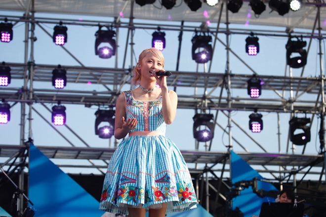 2番手はDream Ami。ソロとして野外ライブのステージに出演するのはこれが初めてとのことで、「初めてで、緊張してたんですけど、みなさんが温かく受け入れてくれたおかげで、ほぐれました!最高の思い出作りましょう!」とライブで初披露のエルビス・プレスリーのカバー「Can’t Help Falling in love ~愛さずにいられない~』を歌う。4人のダンサーを従えて、映画主題歌でおなじみの「トライ・エヴリシング」を披露して、最後の曲を歌う前に、10月19日にニューシングルをリリースすることも発表。「大切な人を想って聴いてください」とバラードナンバー「マジックタイム」をじっくりと歌い上げた。