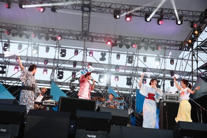 複数のアーティストが一つのステージに出演するイベントでは、次のアーティストの準備の為に、セット転換の休憩時間が出てしまうのが常だが、<ZIP!夏まつり2016>では、そんな繋ぎの時間にも出演アーティストが来場者とゲームを行ったり、「なすなかにし」や「ダブルネーム」といったお笑い芸人のミニステージを披露したり、お客さんを飽きさせない工夫がなされていた。