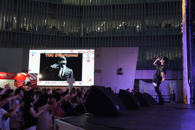TOC(Hilcrhyme)が、8月6日に東京・六本木ヒルズアリーナで開催された<テレビ朝日・六本木ヒルズ夏祭り SUMMER STATION>に出演。約1000人の観客の前で、8月31日発売のメジャーデビュー曲「過呼吸」を含めた計10曲を披露した。
