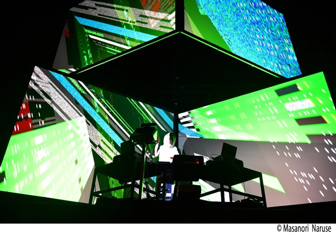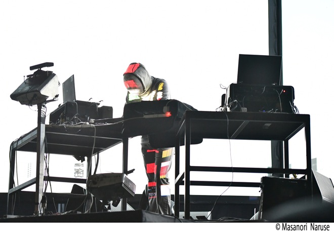 ブレイクビーツというより、造っちゃ壊し造っちゃ壊しの繰り返しのようなスクエアプッシャーの創造的なプレイは、一般的なリスニングミュージックとはかけ離れたもので、こんなに各所から「変態だな〜!」という称賛の声が聞こえてくるライブは初めてだったほど。完全に、感化の連続だった。自らもプロジェクション・マッピングの一部と化すべく真っ白いスーツを着衣した彼のステージは、スーパーエレクトロとでも言いたくなるような総合的な電子芸術であった。