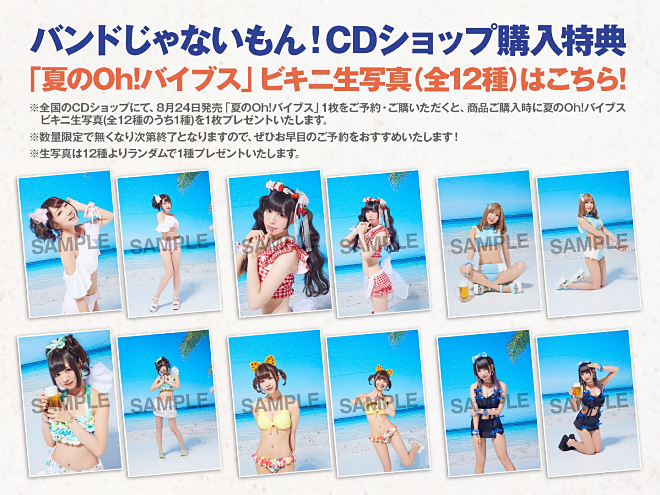 そして、全国のCDショップで「夏のOh!バイブス」を買うと先着で入手できる「ビキニ 生写真」も全12種類の絵柄も公開。こちらはイベント会場では手に入らない店頭購入のみのスペシャル特典となっている。