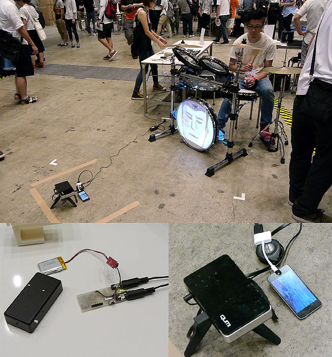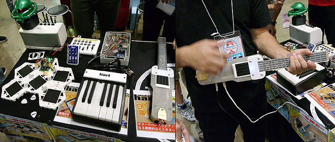 ▲スポンサーゾーンのMAKER HART INDUSTORYは台湾のメーカー。Arduino内蔵のドラムパッドや、ギター型のコントローラーを出展。音源内蔵で単体で遊べるほか、BluetoothによりiOSデバイスのMIDIコントローラーとしても使用可能。キットでの提供となるが30分ほどで完成するとのこと。どちらも1万円台前半で買えるのも魅力。
