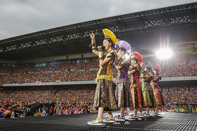 ももいろクローバーZの夏の恒例ライブ<桃神祭2016 〜鬼ヶ島〜>2日目が神奈川・日産スタジアムにて開催され、ライブには59,329人のファンが集結、前日合わせ述べ115,446人を動員した。
