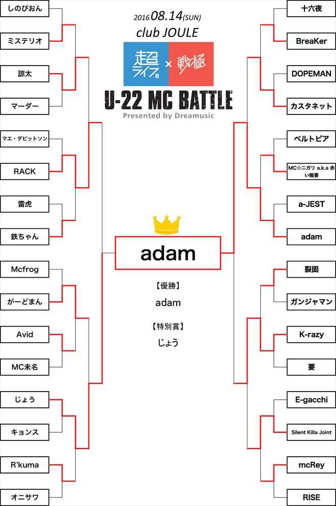 <超ライブ×戦極 U-22 MC BATTLE>大阪公演でadamが優勝&コンピアルバム発売決定