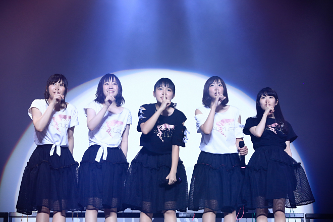 こうして最初に5人の総合力を見せつけたあとは、メンバーの個性際立つ楽曲がしばらく続く。このブロックで改めて強く再認識させられたのは、マキナとレイナのコンビネーションの良さだ。レイナの見せ場のはっきりした締まったフリに対し、マキナの気持ちあふれるダイナミックなフリのコントラストも、非常にバランスがいい。そのほかにも各メンバーのキュートなソロダンスや連動した振付も、序盤の見どころのひとつだった。