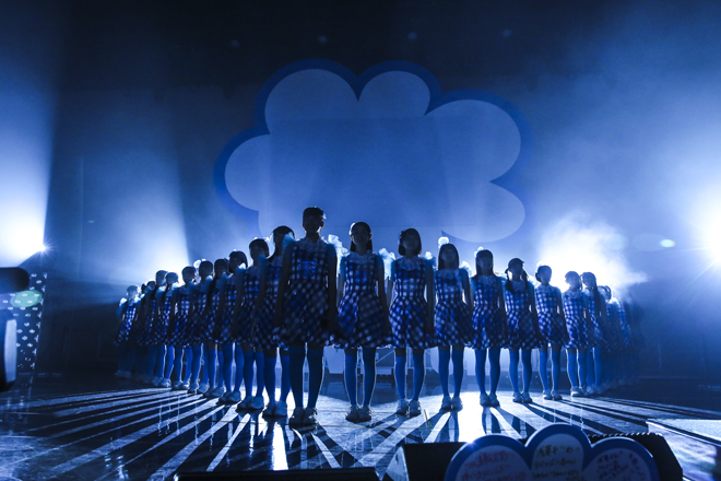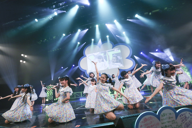 その後は、「七色のスターダスト」から、この日2回目の「勇気のシルエット」へとつなぎ、アンコールは終了。最後に、ステージ上にずらりと並んだ26人が一人ひとり感謝と歓喜の言葉を述べる。ラストの26人目では、「これから私たちは、もっともっと大きく成長していきたいと思います!」と、リーダーの奥澤レイナが熱く、力強く宣言。その充実しきった笑顔は、1年前のリベンジを目標に掲げて全力で突っ走り、大団円に終わったこの日のライブの手応えを象徴しているようだった。