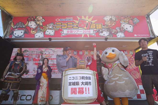 <ニコニコ町会議>とは、ニコニコ最大の公式イベント<ニコニコ超会議>の縮小版として全国各地の“町“で開催される地域交流型イベント。2016年で5回目を迎え、今回の会場選定にあたりニコニコユーザーから開催希望地として2,298件の応募があったという。イガグリ千葉は、大崎市での開催を希望した“招致ユーザー”として出演し、地元の魅力をアピールした。