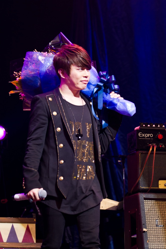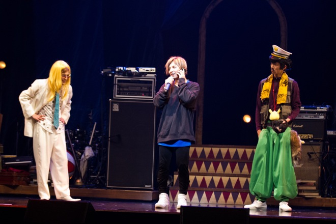 みんなに松岡のどこが好きなのかと聞かれたジルは、「一番は声が好き。二番は性格やな」とリアルに答えて、ファンを絶叫させた。そして「今日は特別な日なので」とアコギを持ち出し、ジルの弾き語りで松岡のためにキャスト(途中からファンも参加)たちがSOPHIAの「happy birthday to you」を歌って、松岡の誕生日を祝福する。感動して目を細める松岡に、ジルは自分と色違いのパンツを、キャストたちは松岡の顔が描かれた大きな誕生日ケーキと青いブーツをプレゼントした。