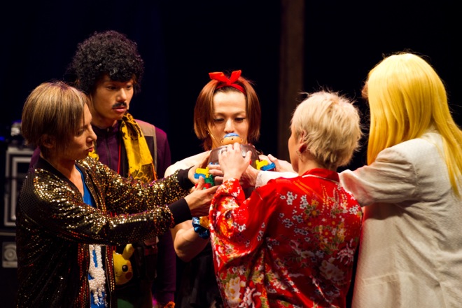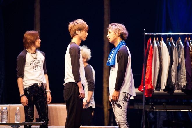 『DDB*』が7月27日、東京・赤坂BLITZにて開幕したことは既報の通り。松岡充の声かけのもとに集まった荒木宏文、平田裕一郎、五十嵐麻朝、真緒という様々なジャンルで活躍する顔ぶれが、いったいどんな新しいエンタテインメントを見せてくれるのだろうかと、開幕前から話題を集めていた。蓋を開けてみると、舞台では主要キャストたち全員が、いつもの肩書きにはない、奇抜なお笑いやストレートプレイ、音楽ライブプレイをパフォーマンスして、ファンの度肝を抜いた。一見するとバラエティー豊かなエンタテインメントショーに見えて、実はこれらが“夢”をキーワードにリアルタイムで進行していく物語に緻密に繋がっていって、そこにはいま現実世界で“夢”を追っている各々のキャストたちの苦悩までもが赤裸々に描かれているというところが、『DDB*』の衝撃だった。