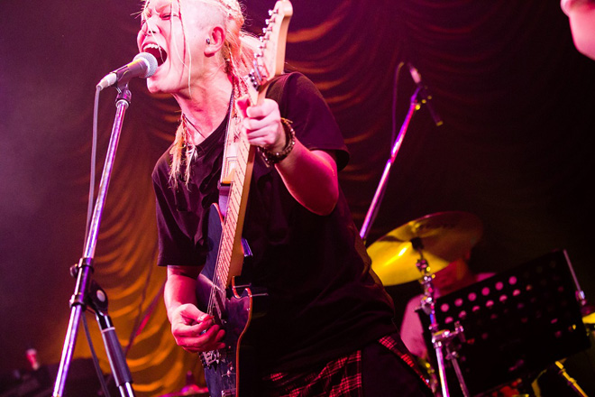 そして始まった本編!SHUN自体、エレキギターを持ってライブパフォーマンスするのは久しぶりで、一発目に始まったのは「開放~オーエーオー~」。