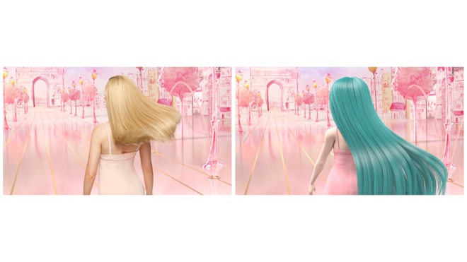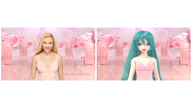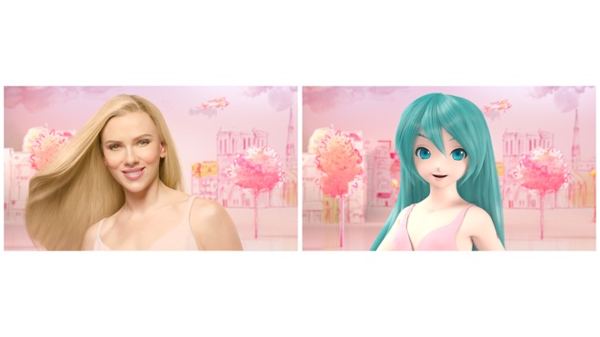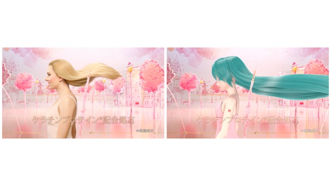 すでに、ハリウッド女優のスカーレット・ヨハンソンが出演する同商品のCMが、8月25日(木)より放映中であるが、スカーレット・ヨハンソンが美しい髪をなびかせながらまっすぐに歩いていくという同CMを、今回の新CMでは初音ミクが寸分違わぬ動きで完全再現する。その中で初音ミクは、トレードマークのツインテールをほどき、いつもよりも少し大人っぽいスタイルの美しいストレーヘアを初披露。ハリウッド女優のスカーレット・ヨハンソンと、世界で最も有名なバーチャル・シンガーの初音ミクが、まったく同じCM映像で“競演”するという、ユニークな企画である。