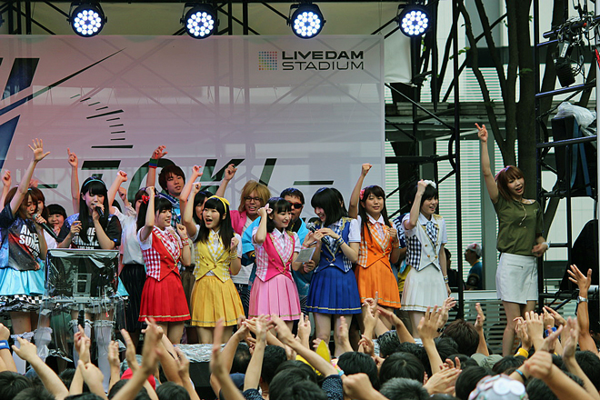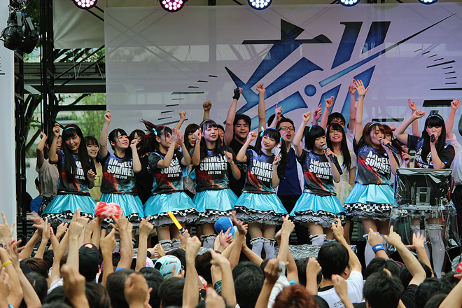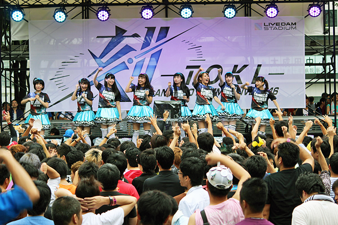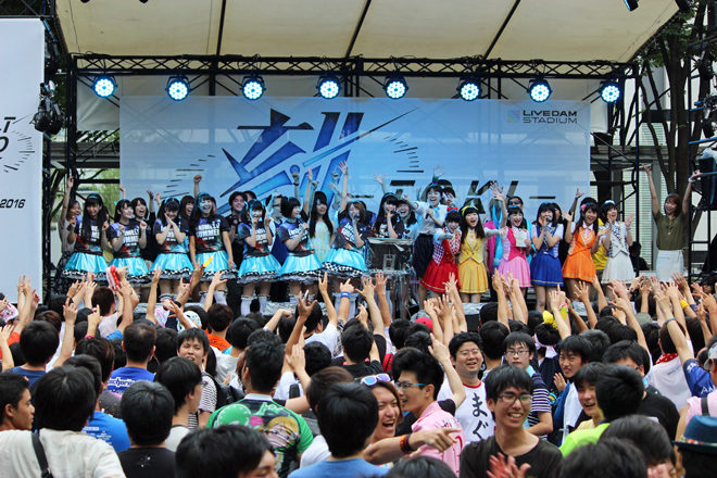 「すごく盛り上がってくれてありがとう!」とここで再び告知のコーナーへ。中島由貴がマイクを握り9月19日に恵比寿クレアで単独ライヴが、12月10日には「2周年記念ライブ」がディファ有明で行われることが告げられた。後半戦は代表曲「Fan Fanfare!!!」からラストはTVアニメ「ミリオンドール」OPテーマ「細胞プロミネンス」のカバーへ。激しくマイナーなロック調の曲に乗せたキレのあるダンスで魅了した。全力のステージを終えると、「みなさん、ライヴに来てくださいー!また会いましょう!」と深々と一礼してステージを降りた。