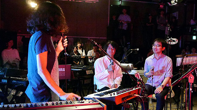 時間を大幅にオーバーするほど盛り上がったトークセッション後、ラストは今回のイベントのためにminiligueとKORGシンセだけで作ったという新曲を演奏。5人のメンバー全員がKORGシンセに向かい、会場内にしみわたるボーカルとともにゆったりとした音の空間を作り出した。