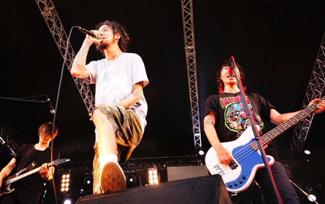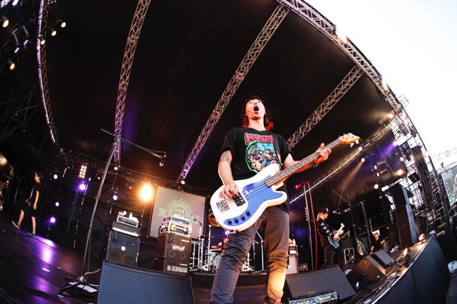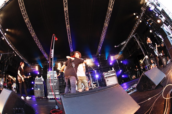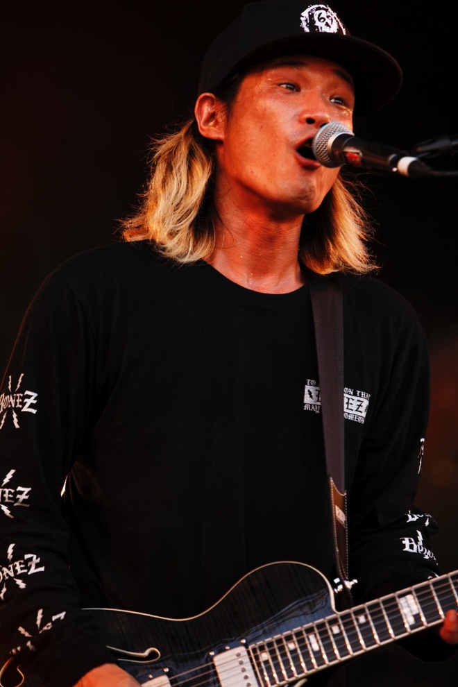 そして、「パンクロックは好きですか?」とNAMBAが問いかけてからの「PUNK ROCK THROUGH NIGHT」ではSAMBU(Dr.)の重みとキレを同居させたドラミングで加速していき、尋常じゃないほどのパワーで全方向へ音を突き刺しながら、この場にふさわし過ぎる「未来へ」でライヴを締めくくる。NAMBA69というバンドだからこそ生み出せるポジティブで純度の高いステージだった。