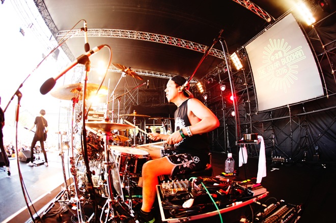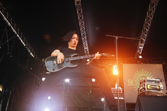 完全なる晴天。適度に風も吹き、緑に囲まれた<中津川 THE SOLAR BUDOKAN>のロケーションも相まって、実に心地がいい。音が鳴り出す前からワクワク感が止まらない客席の空気を感じ取ったのか、もう序盤からトップスピードで駆け出して、REVOLUTION STAGEの口火を華々しく切ったのは、昨年に引き続き2度目の出演となったNAMBA69だ。