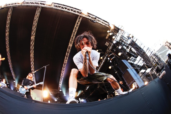 そこから、NAMBAがなんと次にREVOLUTION STAGEに登場するRIZEのJESSEを呼び込むというサプライズが起こる。NAMBAが「晴れたってことは?」と振れば、JESSEが「音は止まらねーぞ!」と返し、客席の熱気は当然の如く上昇し、「LET IT ROCK」をコラボレーションで披露。ダイバーも続出し、ライヴは怒濤の流れへ。