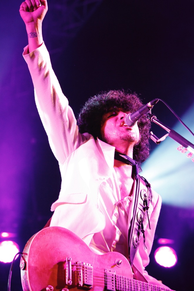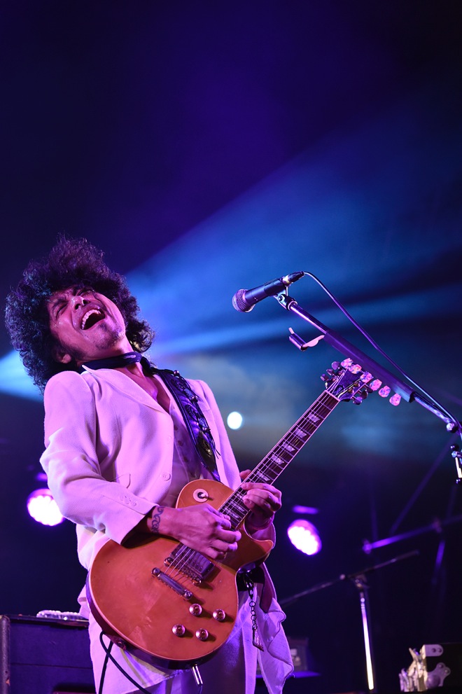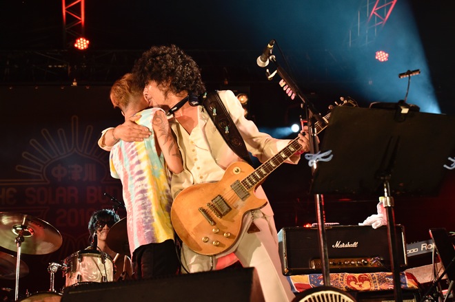そして、「捧げよう。心をこめて演奏したいと思います」と、ギターとしてTHE BLACK COMET CLUB BANDでREDEMPTION STAGEに出演した高野哲がゲスト参加、今年4月に急逝したプリンスの名曲「Purple Rain」を奏で、次の「とんだ太陽の人」では先ほどライヴを終えたばかりのDragon AshからKjが登場、タイジと秀逸なコラボをドロップした。