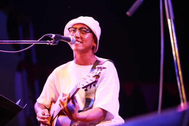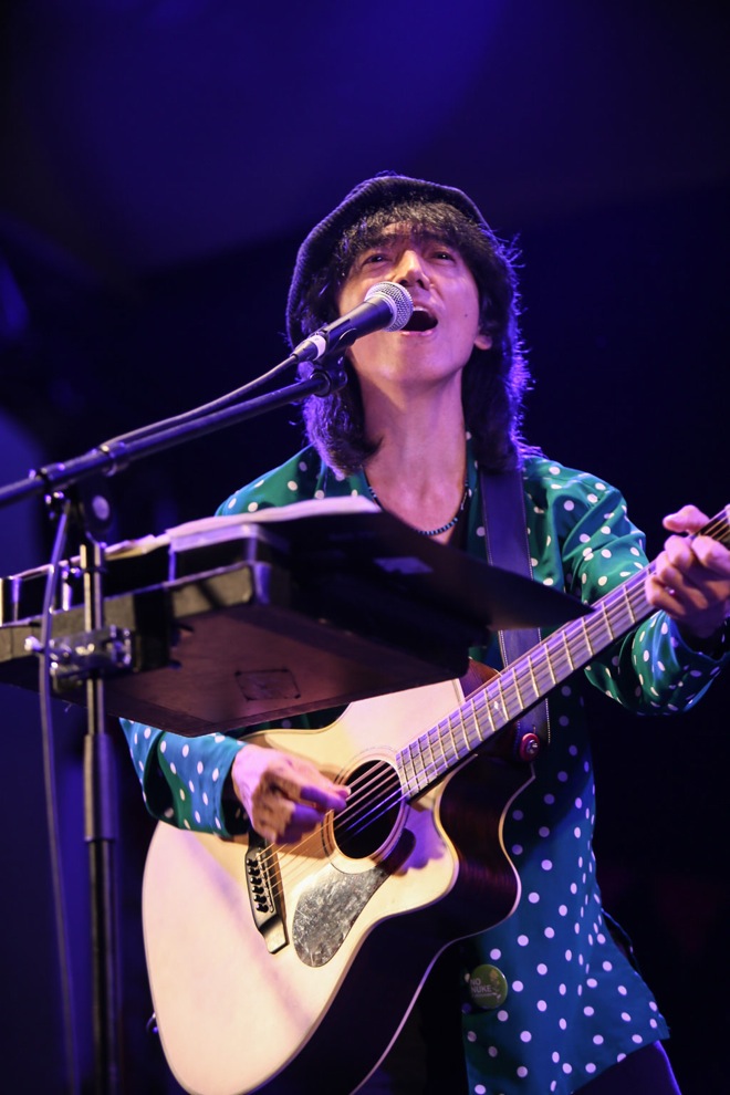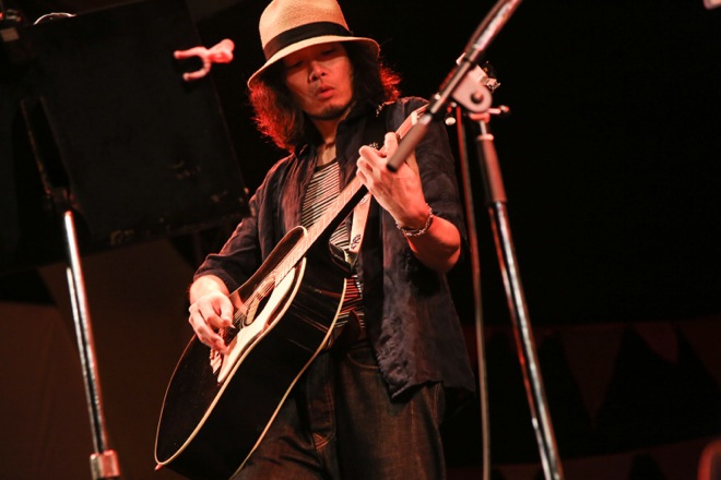 2012年に日本武道館で行われた<THE SOLAR BUDOKAN>から出演しており、浜崎同用、皆勤賞となる仲井戸“CHABO”麗市をステージへ呼び込んだ。「浜崎のおかげでいろんなミュージシャンと会えたことに感謝している」と語ったCHABOだが、この日もPESと佐藤竹善とは初対面となったという。そして、CHABOが1曲目に選んだのは、故・永六輔が作詞した「上を向いて歩こう」のRCサクセション・バージョンだった。深くリバーブをかけたギター・ソロがピースフルな音楽堂といった風情のRESPECT STAGEにピッタリとマッチして心に強く残った。ニール・ヤングのカバー「ハーベストムーン」は浜崎と共に幻想的なギターフレーズを弾きながら。ステージ照明が落とされ、月灯りの下で歌われた同曲は、<中津川 THE SOLAR BUDOKAN>のプランニングプロデュースを務めるワイズコネクションの創始者、故・加藤与佐雄氏に捧げられたものだった。